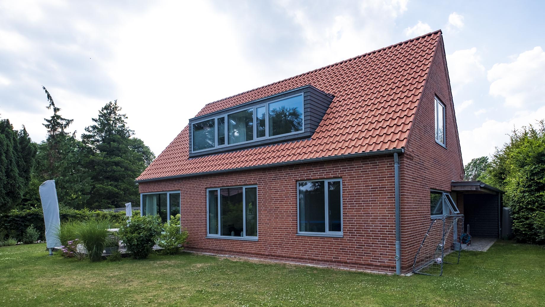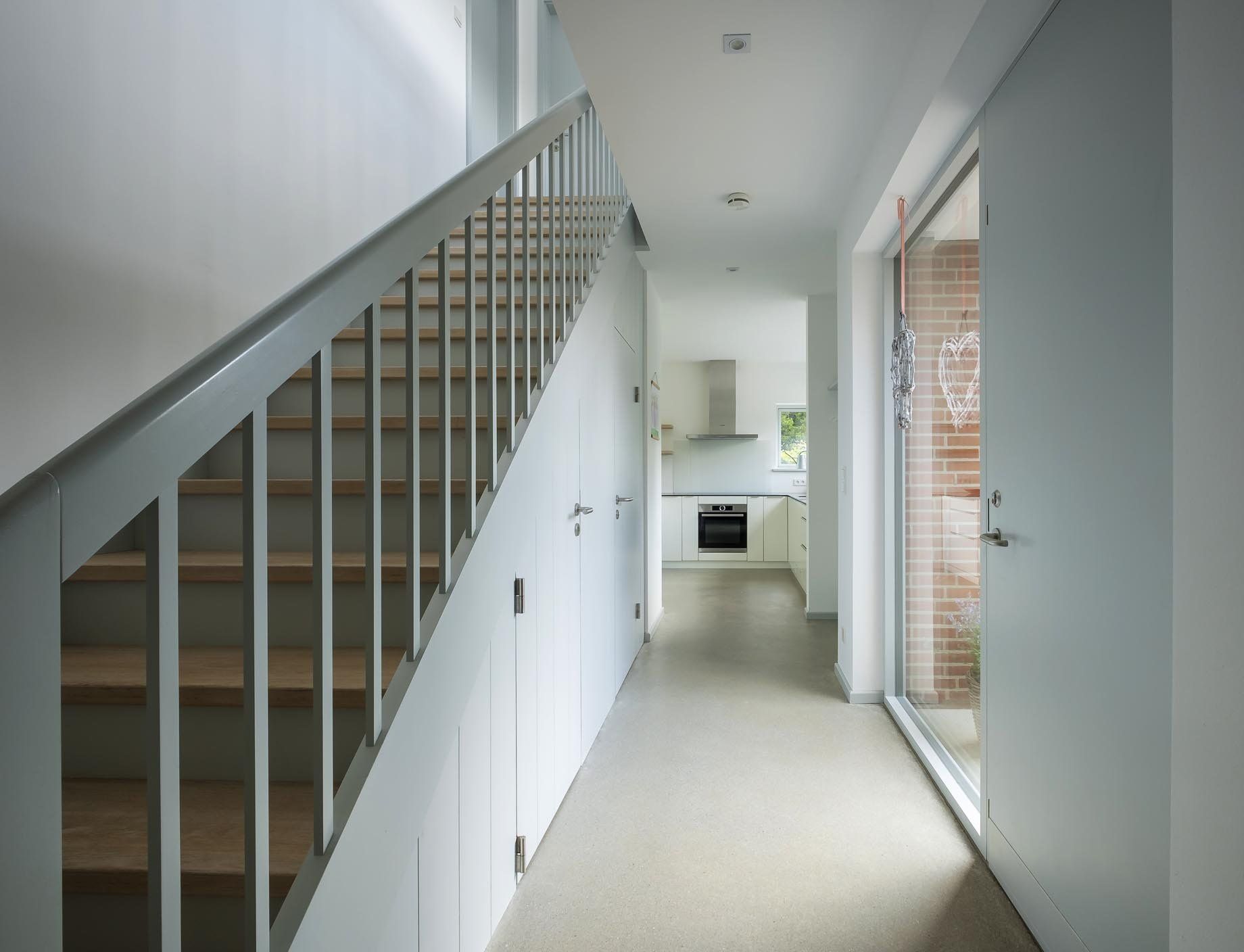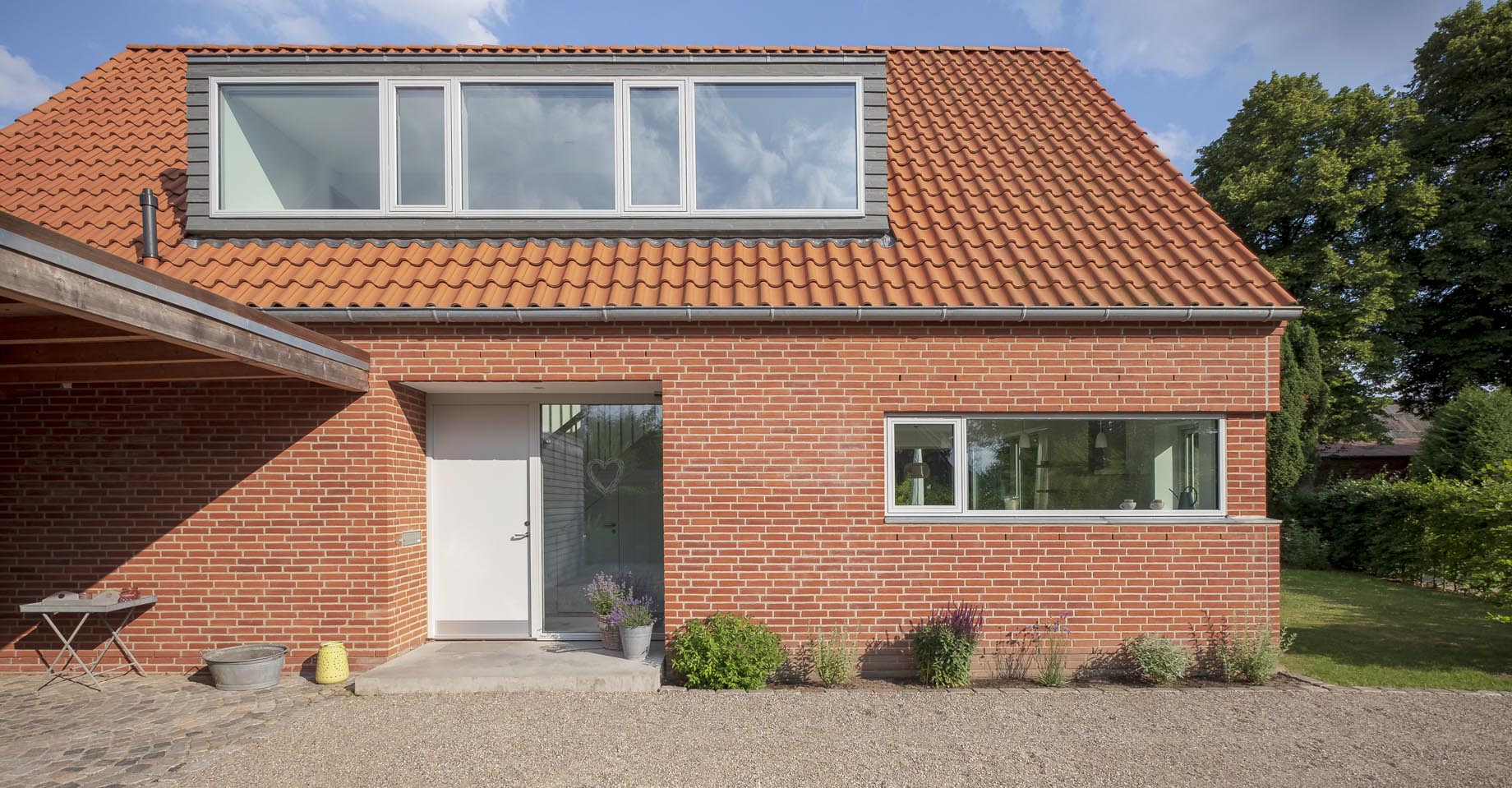 Das abrissreife Bestandsgebäude auf dem idyllischen Grundstück im denkmalgeschützten Ortskern von Hamburg-Bergstedt sollte durch einen einfügsamen und zeitgemäßen Neubau ersetzt werden. Lage, Kubatur und Materialität wurden angelehnt an den Bestand gewählt. Der kompakte Baukörper fügt sich auf selbstverständliche Weise in die sensible Umgebung ein.